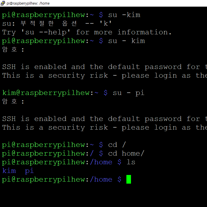 su - : 기본 루트계정으로 들어감