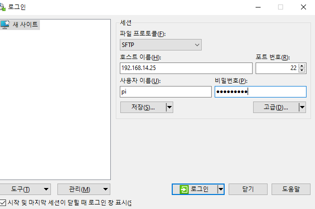 scp 파일 (디렉토리경로) pi@192.168.14.25:/home/pi